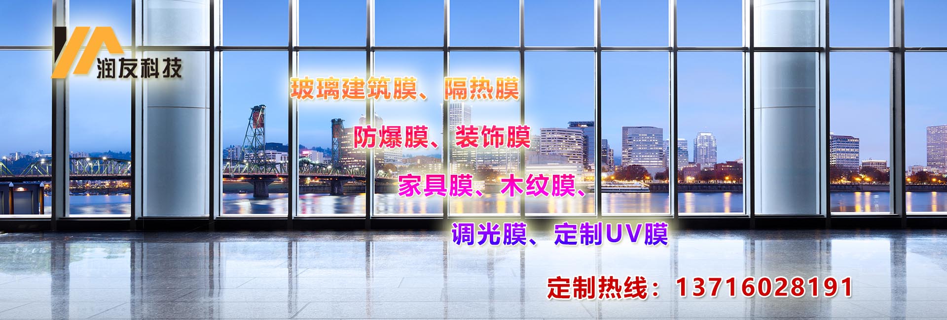 北京市潤友科技發(fā)展有限責(zé)任公司,是一家專注于建筑玻璃膜銷售、施工為一體、是目前專業(yè)建筑玻璃貼膜領(lǐng)袖企業(yè)。   公司致力于玻璃建筑膜、隔熱膜、防爆膜、裝飾膜、調(diào)光膜、木紋膜、家具膜、定制UV膜等等的應(yīng)用推廣,并在節(jié)能、環(huán)保、技術(shù)創(chuàng)新等領(lǐng)域獲得多項(xiàng)顯著成績,多款式、多風(fēng)格不同角度滿足客戶多元化需求。 ????經(jīng)過多年的探索研究公司制定內(nèi)部施工標(biāo)準(zhǔn),從設(shè)計(jì)效果、施工規(guī)范、工地管理、質(zhì)保維護(hù)等方面嚴(yán)控源頭規(guī)避施工隱患,為客戶打造安全節(jié)能環(huán)保的體驗(yàn)環(huán)境。對行業(yè)的發(fā)展和施工工程的標(biāo)準(zhǔn)化提升都具有重要意義,同時(shí)也奠定公司在建筑膜行業(yè)的地位。 ????公司自成立于2005年,公司自經(jīng)營建筑玻璃膜以來,承接了石景山奧運(yùn)場館,釣魚臺國賓館,國務(wù)院機(jī)關(guān)事物管理局等大型建筑玻璃貼膜施工任務(wù)。積累了豐富的施工經(jīng)驗(yàn),掌握了各種新型施工技術(shù)。多年來恪守“質(zhì)量第一、客戶至上”的服務(wù)宗旨、遵循“優(yōu)質(zhì)、高效、團(tuán)結(jié)、奉獻(xiàn)的工作態(tài)度、節(jié)能減排、為您創(chuàng)建舒適的家居及辦公環(huán)境。